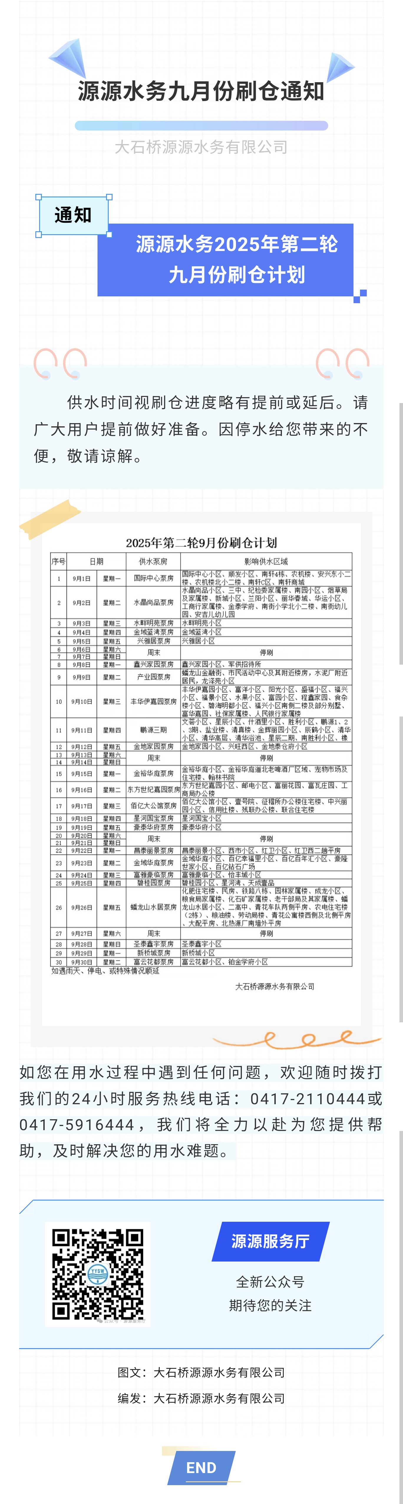 源源水務九月份刷倉通知